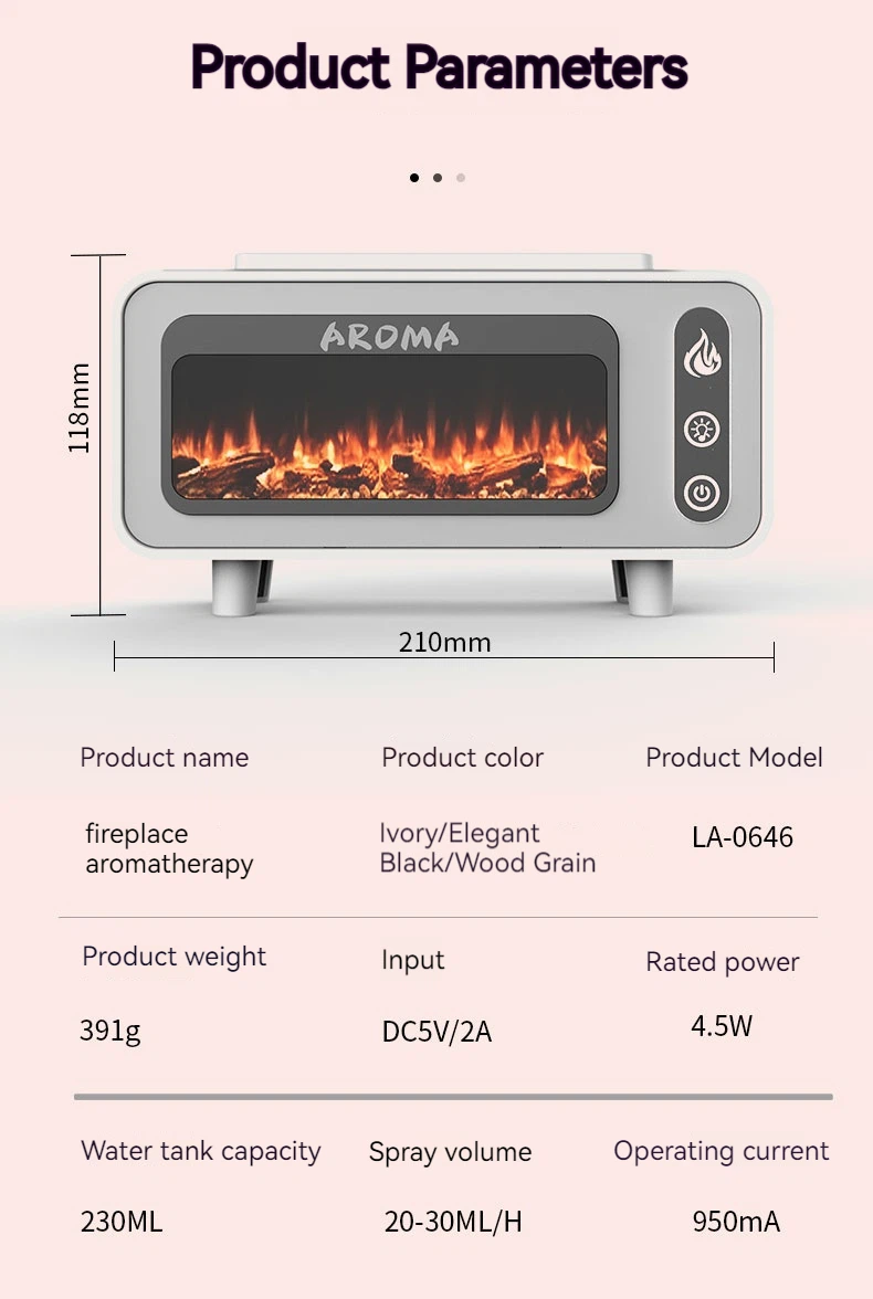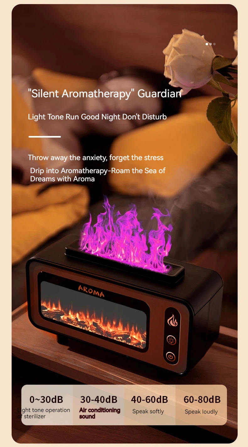 اثر نور شعله: این پراکندگی عطر شعله با تراشه هوشمند و غبار خنک طراحی شده است که می تواند اثر شعله را ایجاد کند ، با 2 حالت روشنایی شعله قابل تنظیم است ، شعله سوزاندن 3D واقع گرایانه جو عاشقانه و شفابخشی را در شب به ارمغان می آورد.